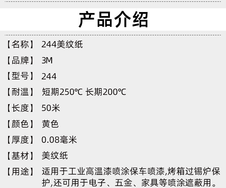 適用范圍:噴漆遮蔽、保護(hù)、通用